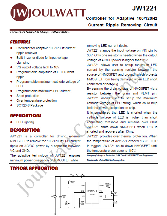 JW1221 JOULWATT Current Ripple Removing Circuit